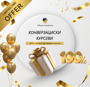 Нашата академија има два вида курсеви. Едните курсеви се наменети за изучување на јазикот, а другите се нарекуваат конверзациски и се наменети да се вежба зборување и изговор и тоа се курсеви за луѓе кои веќе го познаваат јазикот.